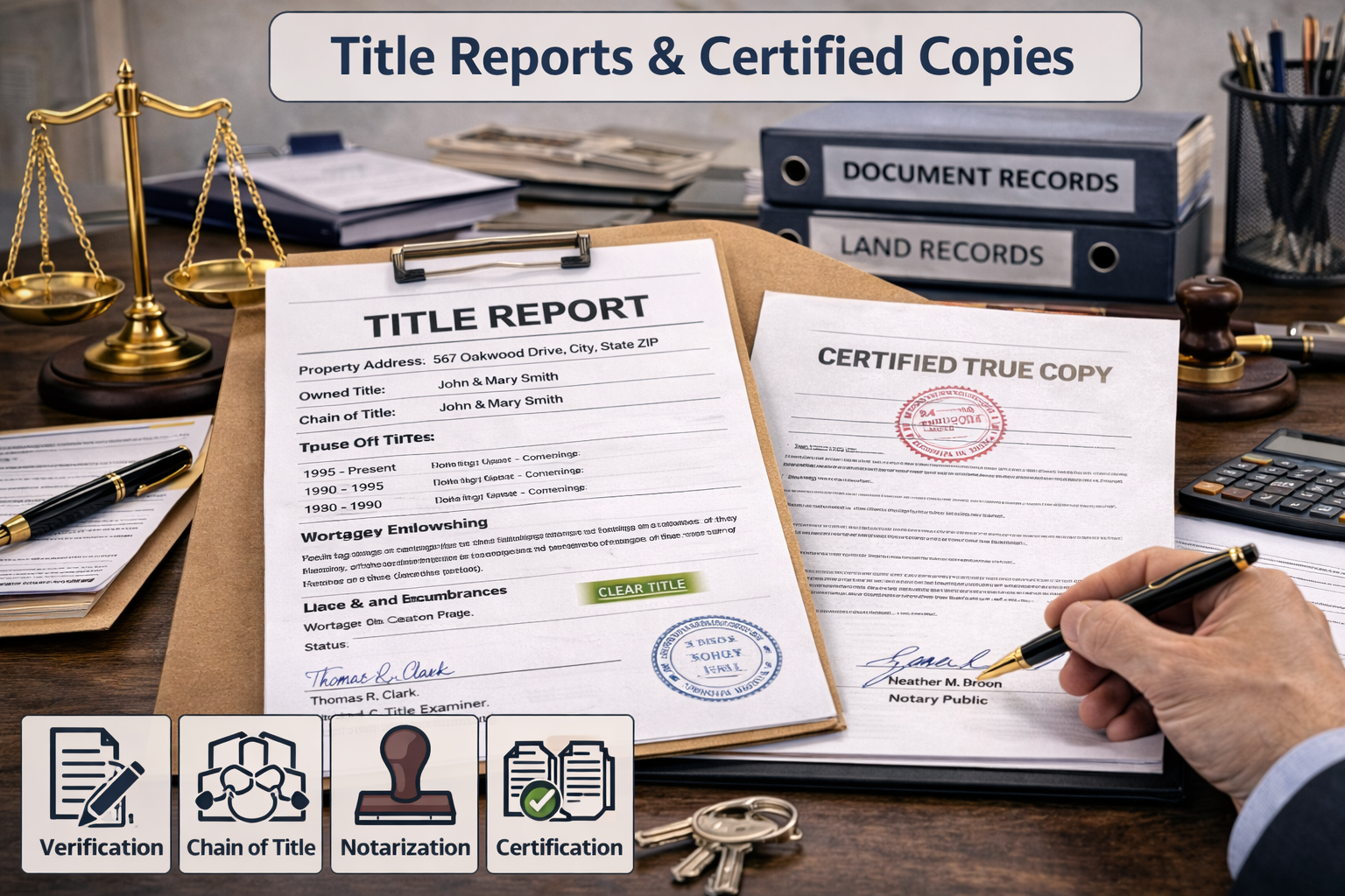Title Reports & Certified Copies refer to the legal verification of property ownership along with officially attested copies of property-related documents obtained from government authorities. A Title Report confirms the chain of ownership, legal status, and whether the property is free from encumbrances. Certified Copies are true copies of registered documents issued by the Sub-Registrar under the Registration Act, 1908. These documents are essential for property transactions, legal due diligence, bank loans, and MIDC approvals. They ensure authenticity, transparency, and legal security in property dealings.