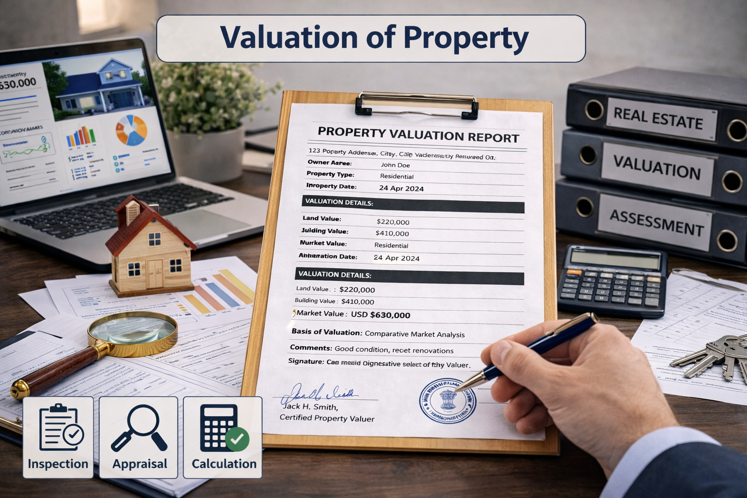 Valuation of Property is the process of determining the fair market value of a property based on its location, area, usage, and prevailing market conditions. It is carried out by a Government Approved Valuer or as per Ready Reckoner rates issued by the Government of Maharashtra. The valuation considers factors such as land value, construction cost, amenities, and industrial potential. Proper valuation ensures transparency and avoids under-valuation or legal disputes.